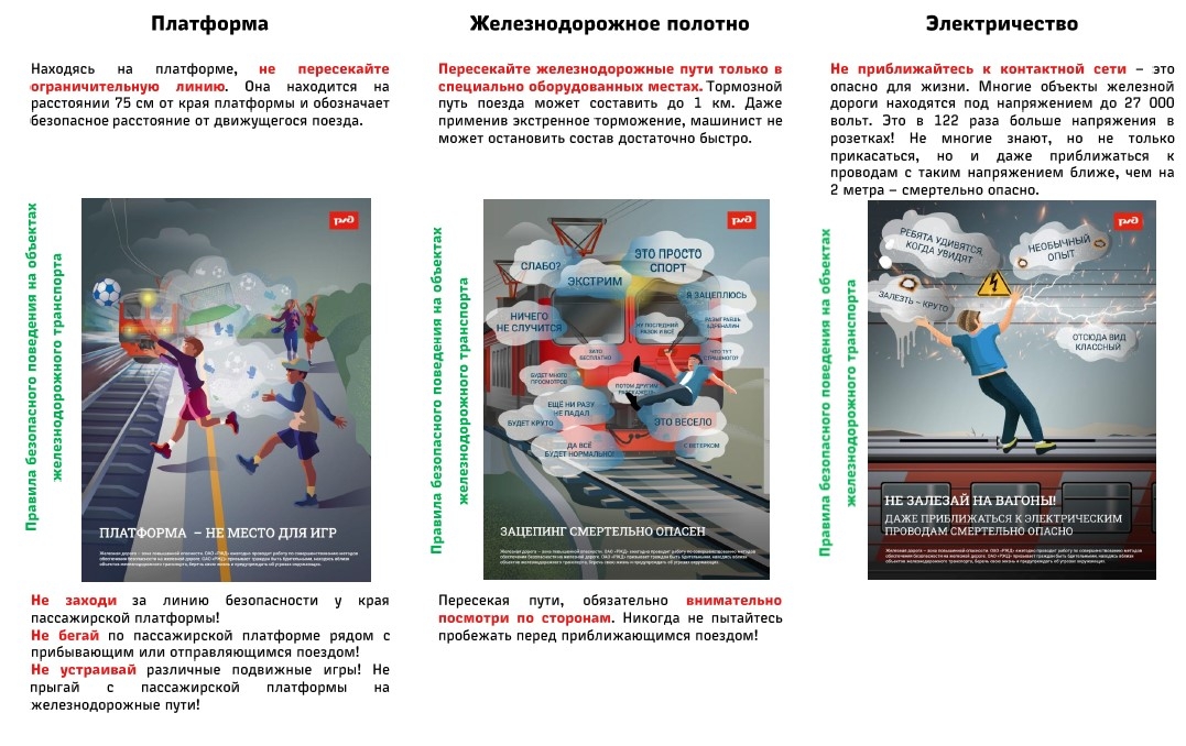 Помните, что быстро остановить поезд невозможно! Для остановки поезда, движущегося со скоростью 60-70 км/ч, необходимо 600-700 метров. Масса локомотива превышает 500 тонн, а грузового состава – 5 тыс. тонн!