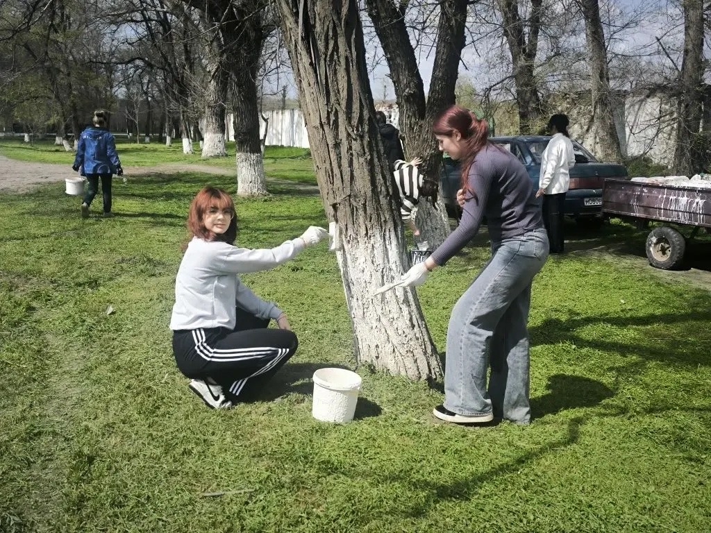 Обучающиеся  девятых классов дружно принялись за работу и побелили деревья, окаймляющие транспортную дорогу. Они знают, что весенняя побелка - это не только создание опрятного вида улицам, но и защита коры деревьев от насекомых.